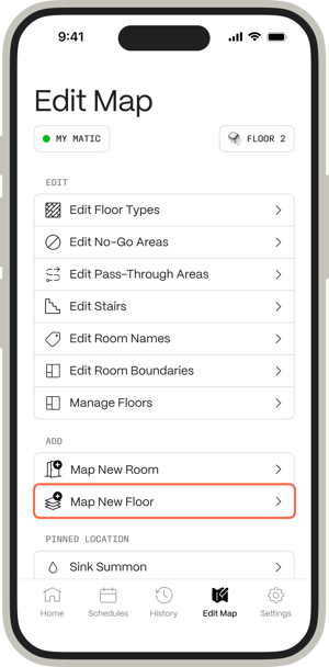 - When Matic detects a new floor, it will display a "map my home" button on the app screen.